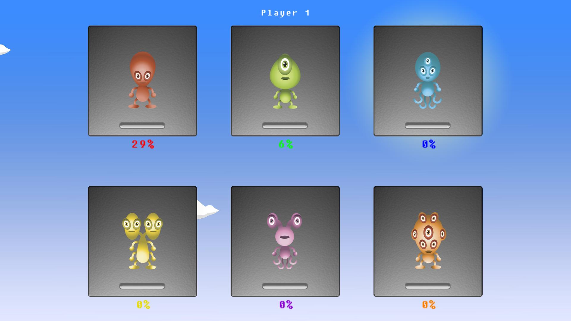 Play as one of six colourful alien characters